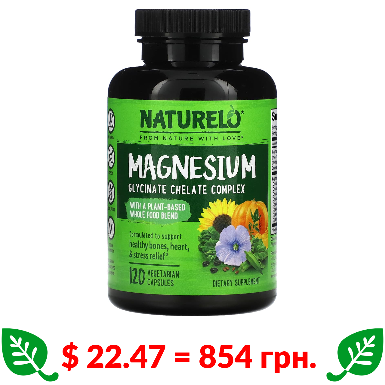 $ 22.47 = 854 грн. ????️ у кошику ????️ NATURELO, Magnesium Glycinate Chelate Complex, 120 Vegetarian Capsules