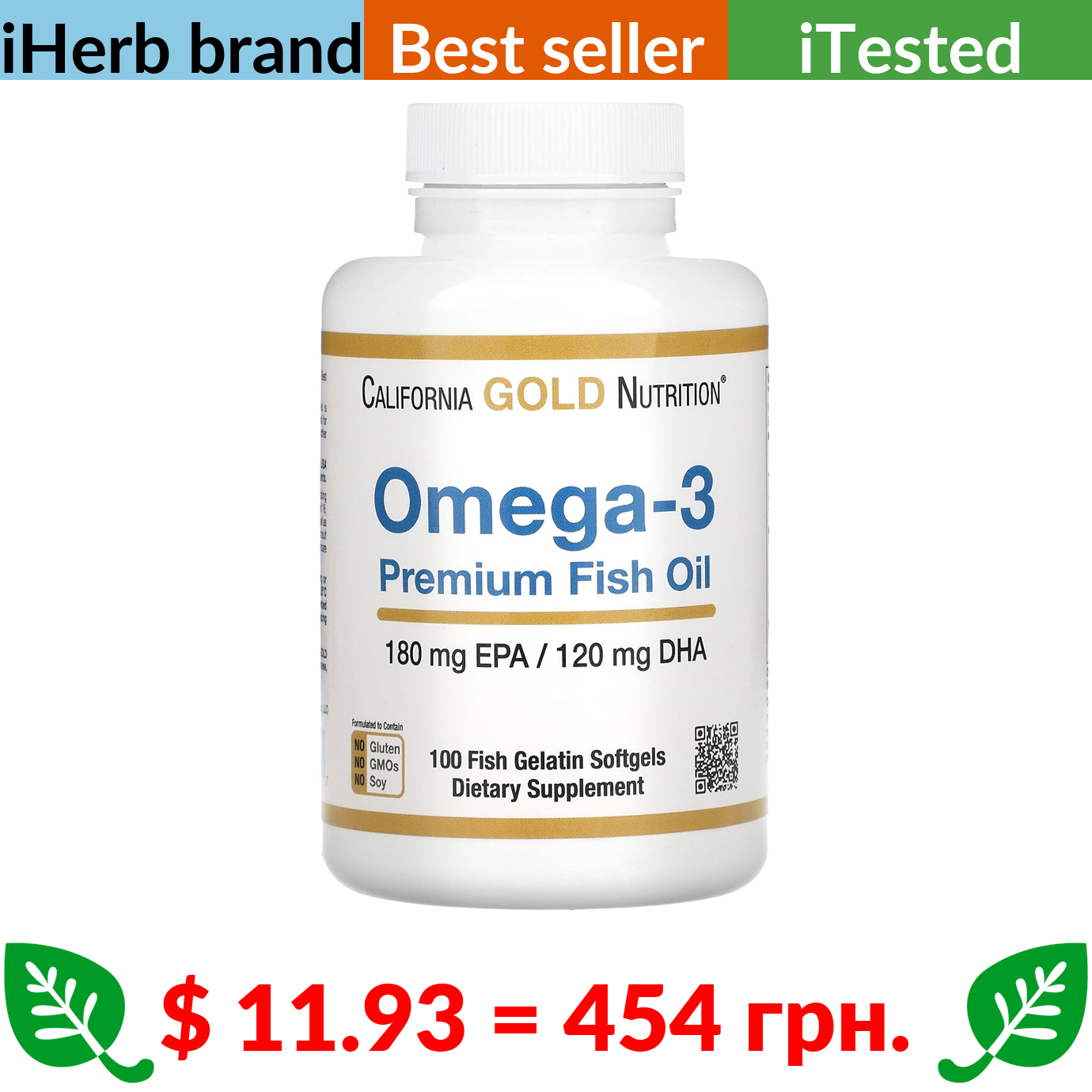 Лише $17.4 – Комбопропозиція (економія $5.5) купуйте разом з California Gold Nutrition, Omega-3 Premium Fish Oil, 100 Fish Gelatin Softgels