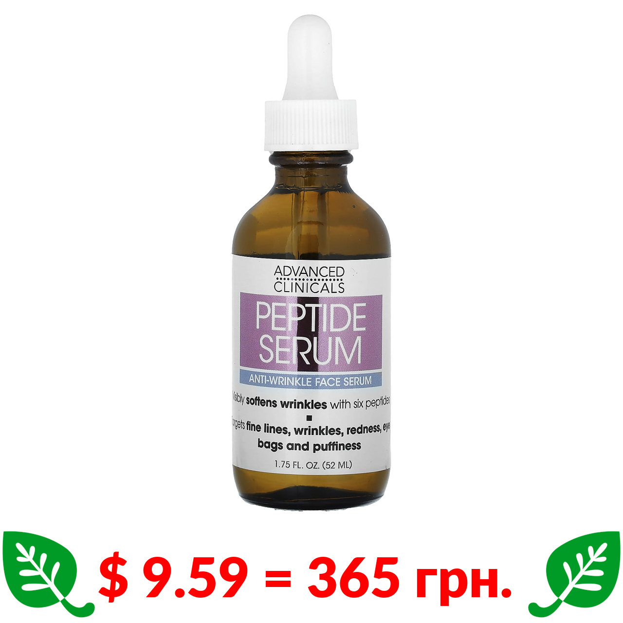 $ 9.59 = 365 грн. Advanced Clinicals, Peptide Serum, Anti-Wrinkle Face Serum, 1.75 fl oz (52 ml)