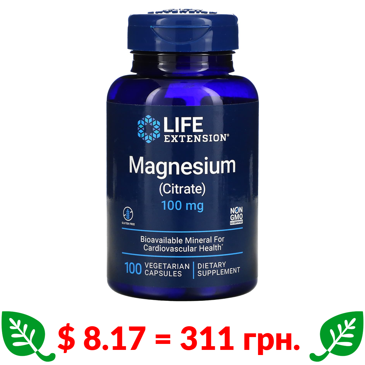 $ 8.17 = 311 грн. ????️ у кошику ????️ Life Extension, Magnesium (Citrate), 100 mg, 100 Vegetarian Capsules