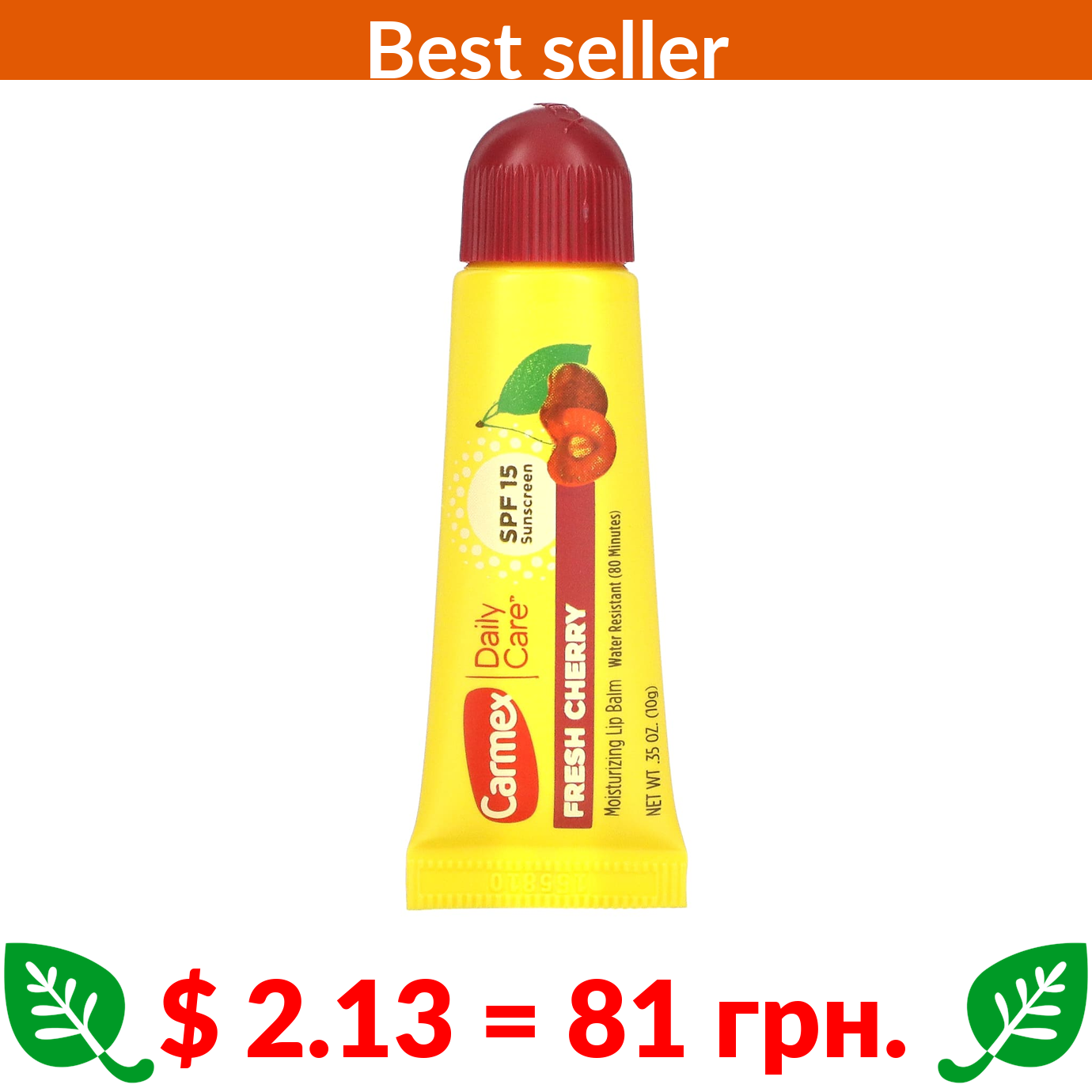 $ 2.13 = 81 грн. Carmex, Daily Care, Moisturizing Lip Balm, Fresh Cherry, SPF 15, 0.35 oz (10 g)