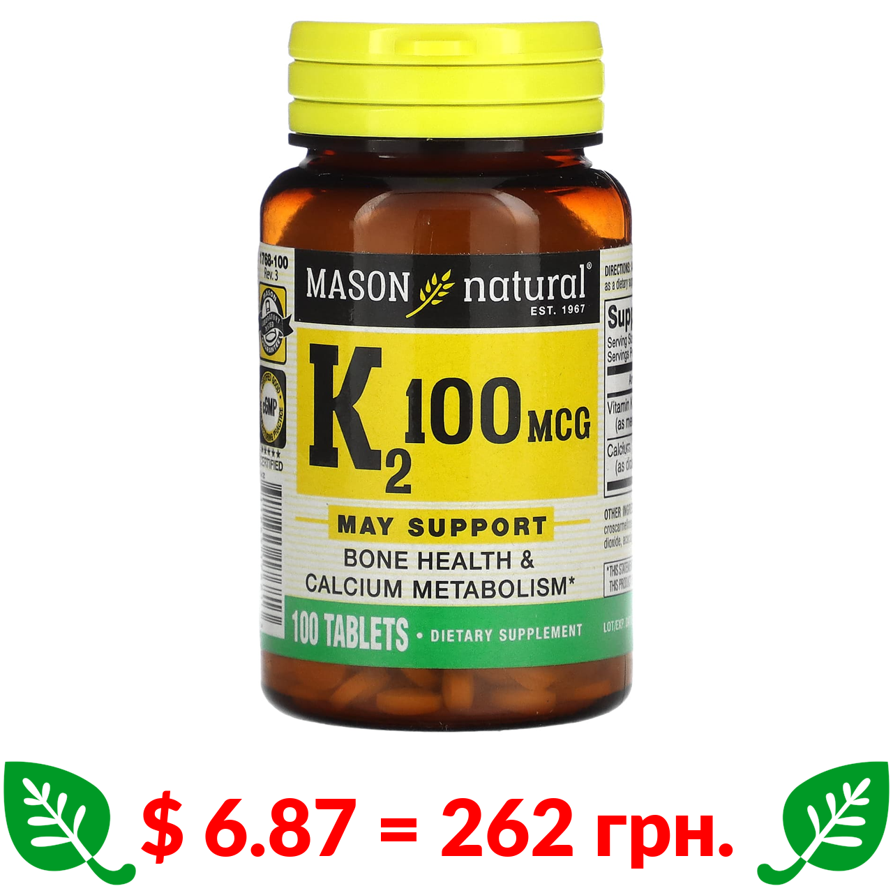 $ 6.87 = 262 грн. ????️ у кошику ????️ Mason Natural, Vitamin K2, 100 mcg, 100 Tablets