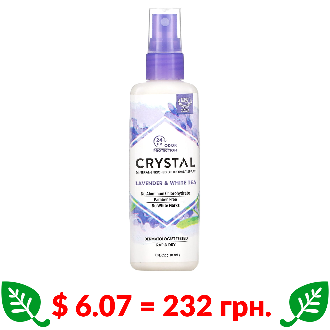 $ 6.07 = 232 грн. Crystal, Mineral-Enriched Deodorant Spray, Lavender & White Tea, 4 fl oz (118 ml)