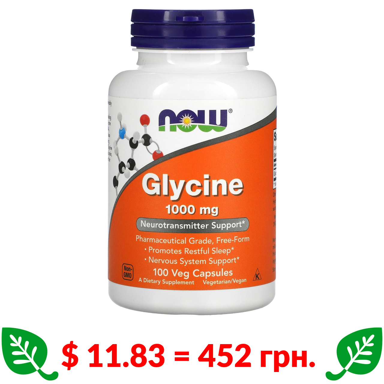 $ 11.83 = 452 грн. NOW Foods, Glycine, 1,000 mg, 100 Veg Capsules