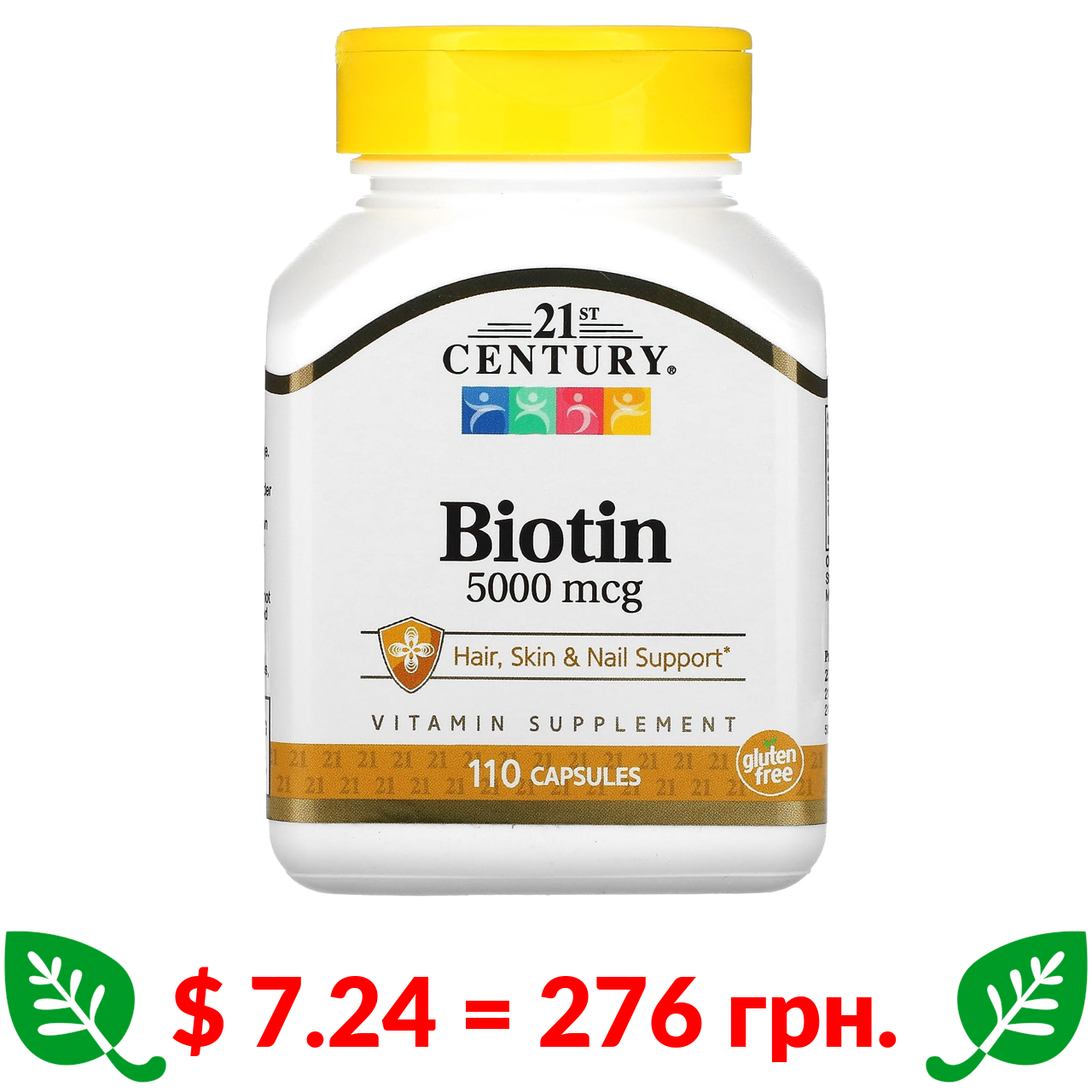 $ 7.24 = 276 грн. 21st Century, Biotin, 5,000 mcg, 110 Capsules