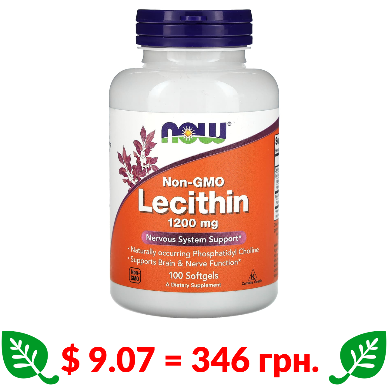 $ 9.07 = 346 грн. NOW Foods, Non-GMO Lecithin, 1,200 mg, 100 Softgels