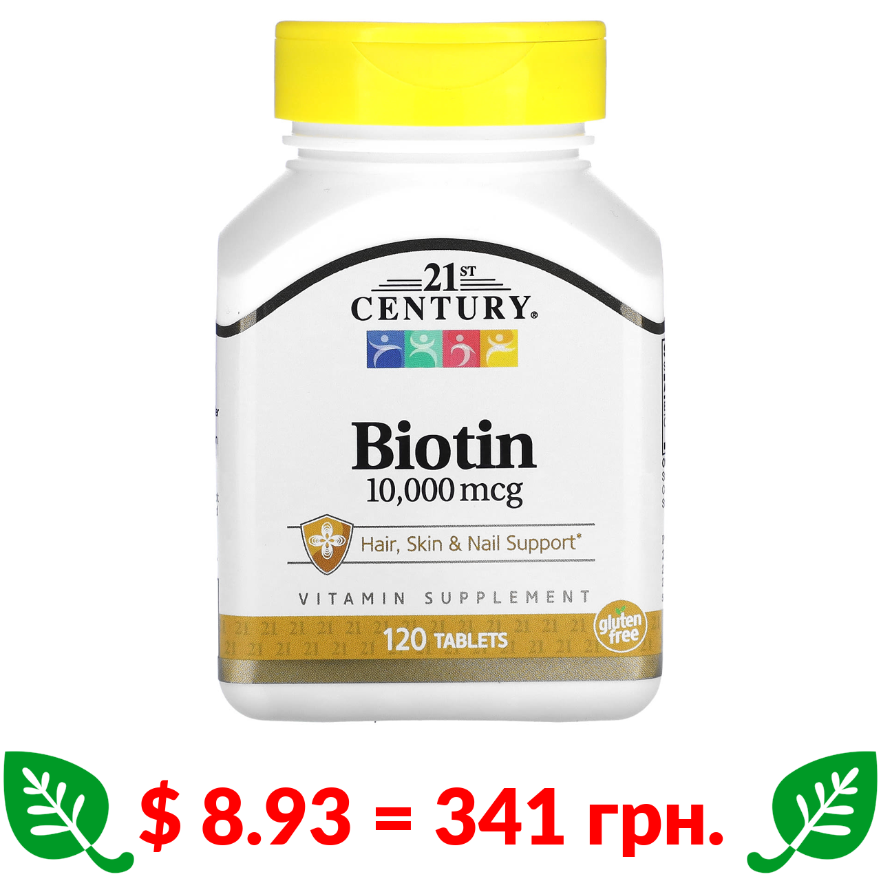 $ 8.93 = 341 грн. 21st Century, Biotin, 10,000 mcg, 120 Tablets