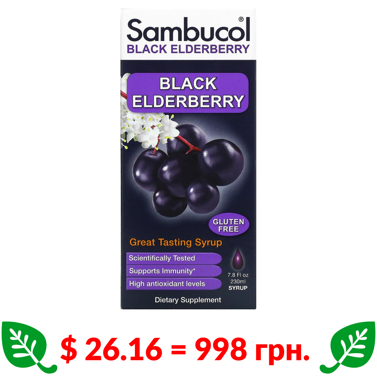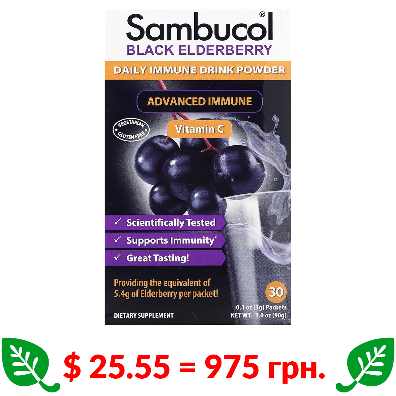 $ 25.55 = 975 грн. Sambucol, Black Elderberry, Daily Immune Drink Powder, Natural Berry, 30 Packets, 0.1 oz (3 g) Each