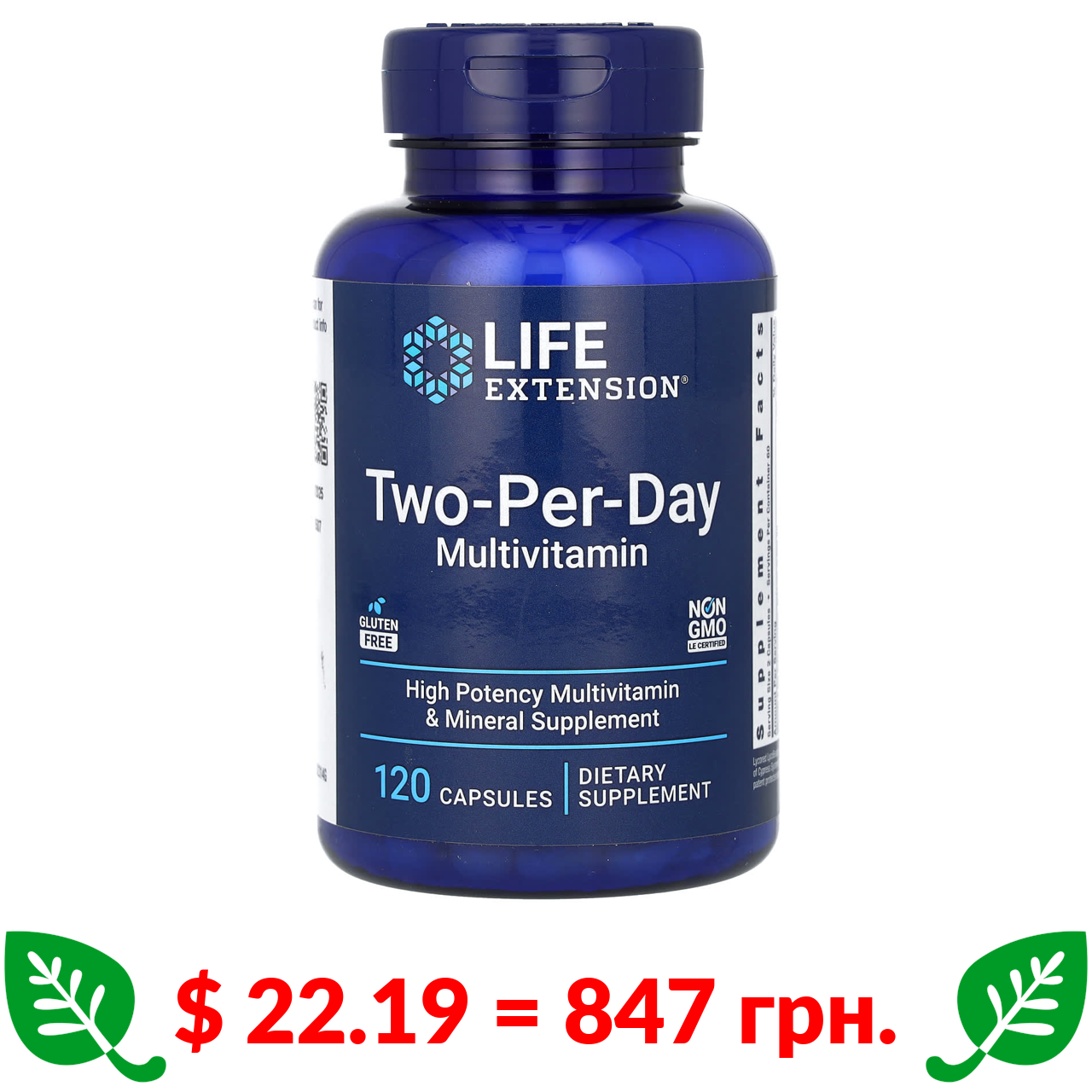 $ 22.19 = 847 грн. Life Extension, Two-Per-Day Multivitamin, 120 Capsules
