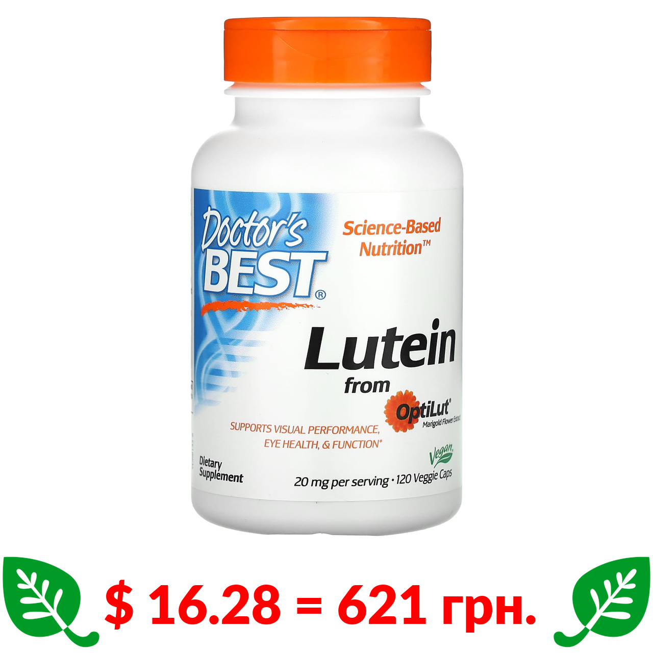$ 16.28 = 621 грн. Doctor’s Best, Lutein from OptiLut, 20 mg, 120 Veggie Caps (10 mg per Capsule)