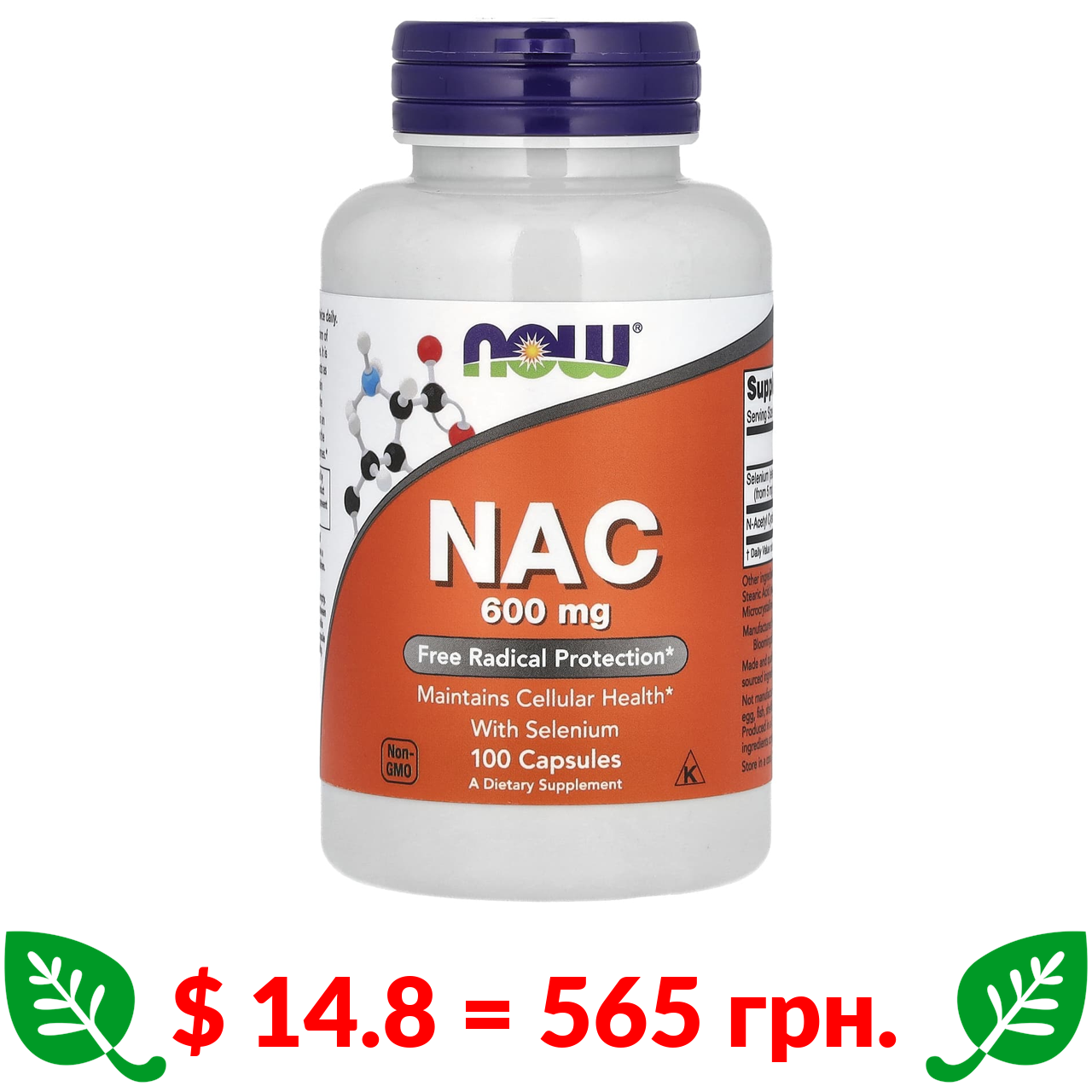 $ 14.8 = 565 грн. NOW Foods, NAC, 600 mg, 100 Capsules