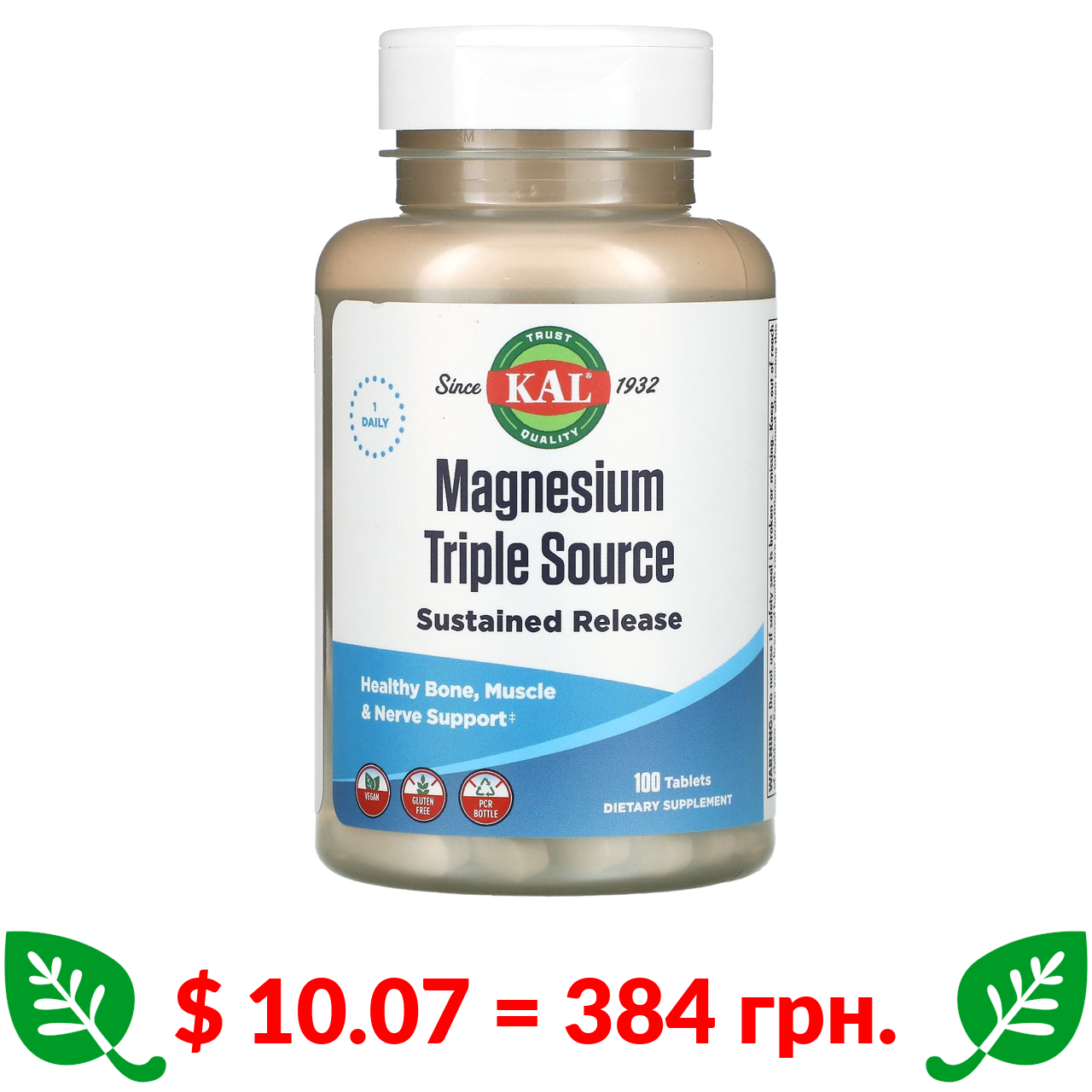 $ 10.07 = 384 грн. ????️ у кошику ????️ KAL, Magnesium Triple Source, 100 Tablets