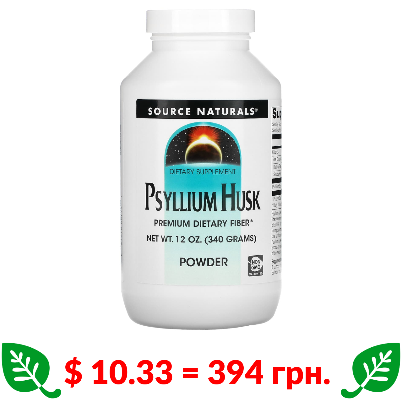 $ 10.33 = 394 грн. Source Naturals, Psyllium Husk Powder, 12 oz (340 g)