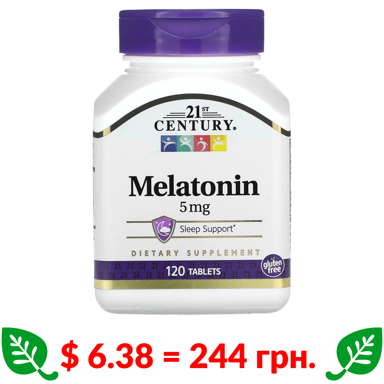 $ 6.38 = 244 грн. ????️ у кошику ????️ 21st Century, Melatonin, 5 mg, 120 Tablets