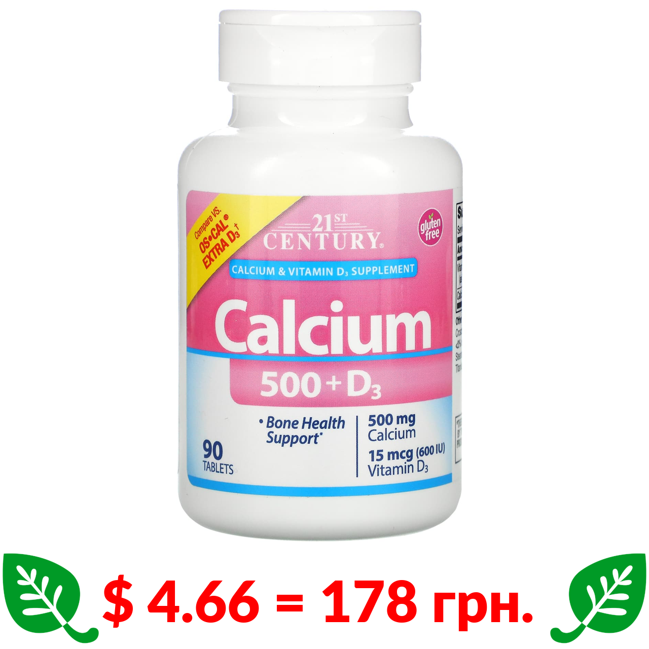 $ 5.17 = 197 грн. 21st Century, Calcium Magnesium Zinc + D3, 90 Tablets