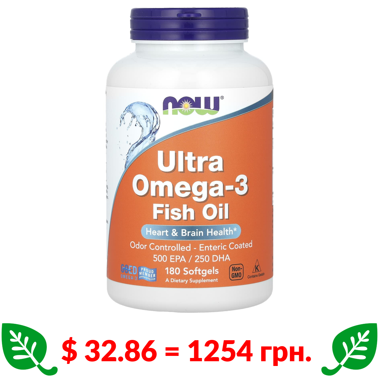 $ 8.06 = 308 грн. NOW Foods, Omega-3, 2,000 mg, 100 Softgels (180 EPA / 120 DHA per Softgel )