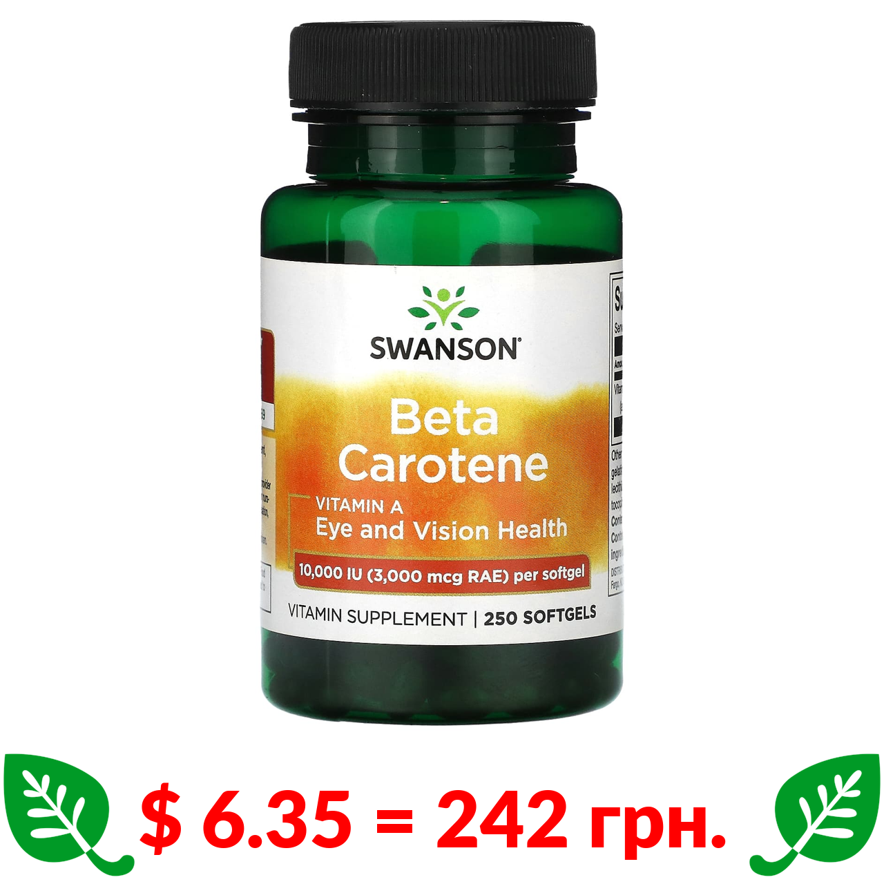 $ 6.35 = 242 грн. Swanson, Beta Carotene, 10,000 IU (3,000 mcg RAE), 250 Softgels