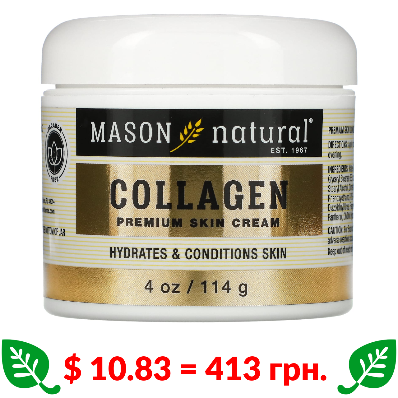 $ 10.83 = 413 грн. ????️ у кошику ????️ Mason Natural, Collagen Premium Skin Cream, Pear Scented, 4 oz (114 g)