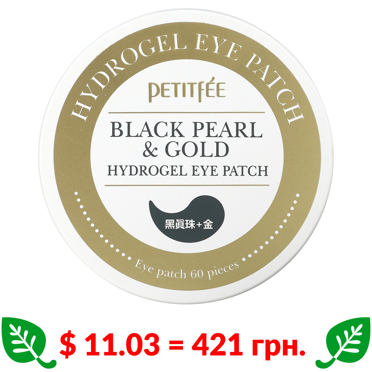 $ 11.03 = 421 грн. Petitfee, Black Pearl & Gold Hydrogel Eye Patch, 60 Patches