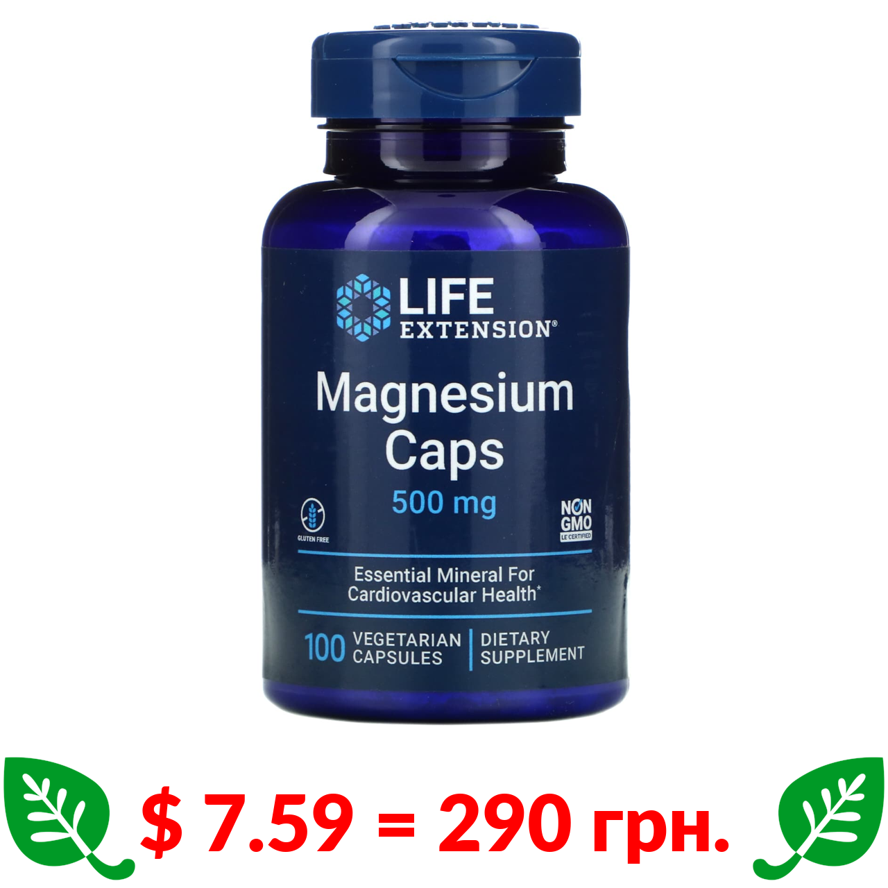 $ 7.59 = 290 грн. ????️ у кошику ????️ Life Extension, Magnesium Caps, 500 mg, 100 Vegetarian Capsules