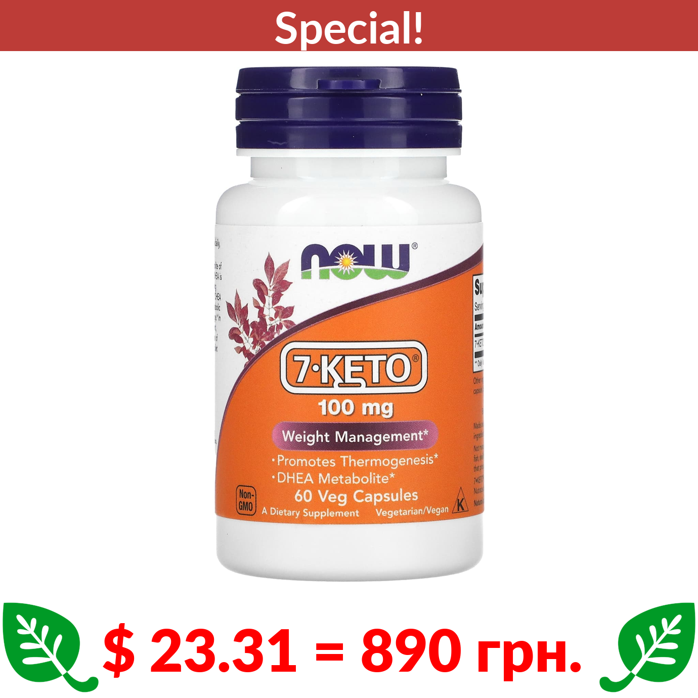 $ 23.31 = 890 грн. ???? cуперакція! ???? NOW Foods, 7-KETO, 100 mg, 60 Veg Capsules