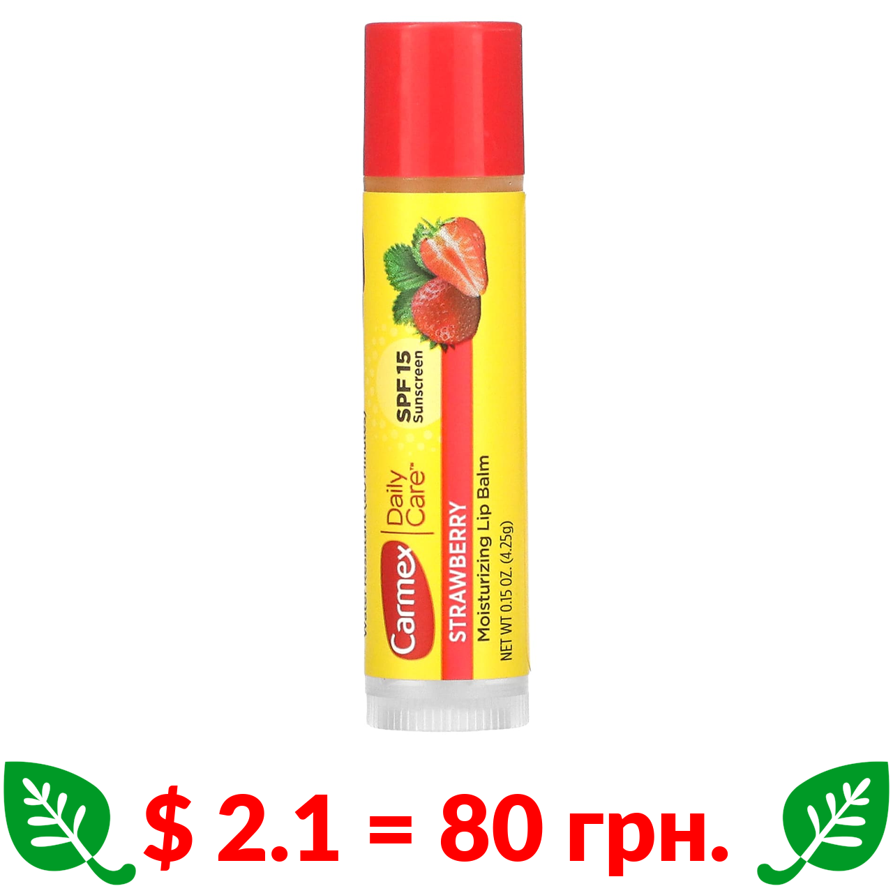 $ 2.1 = 80 грн. Carmex, Daily Care, Moisturizing Lip Balm, Strawberry, SPF 15, 0.15 oz (4.25 g)