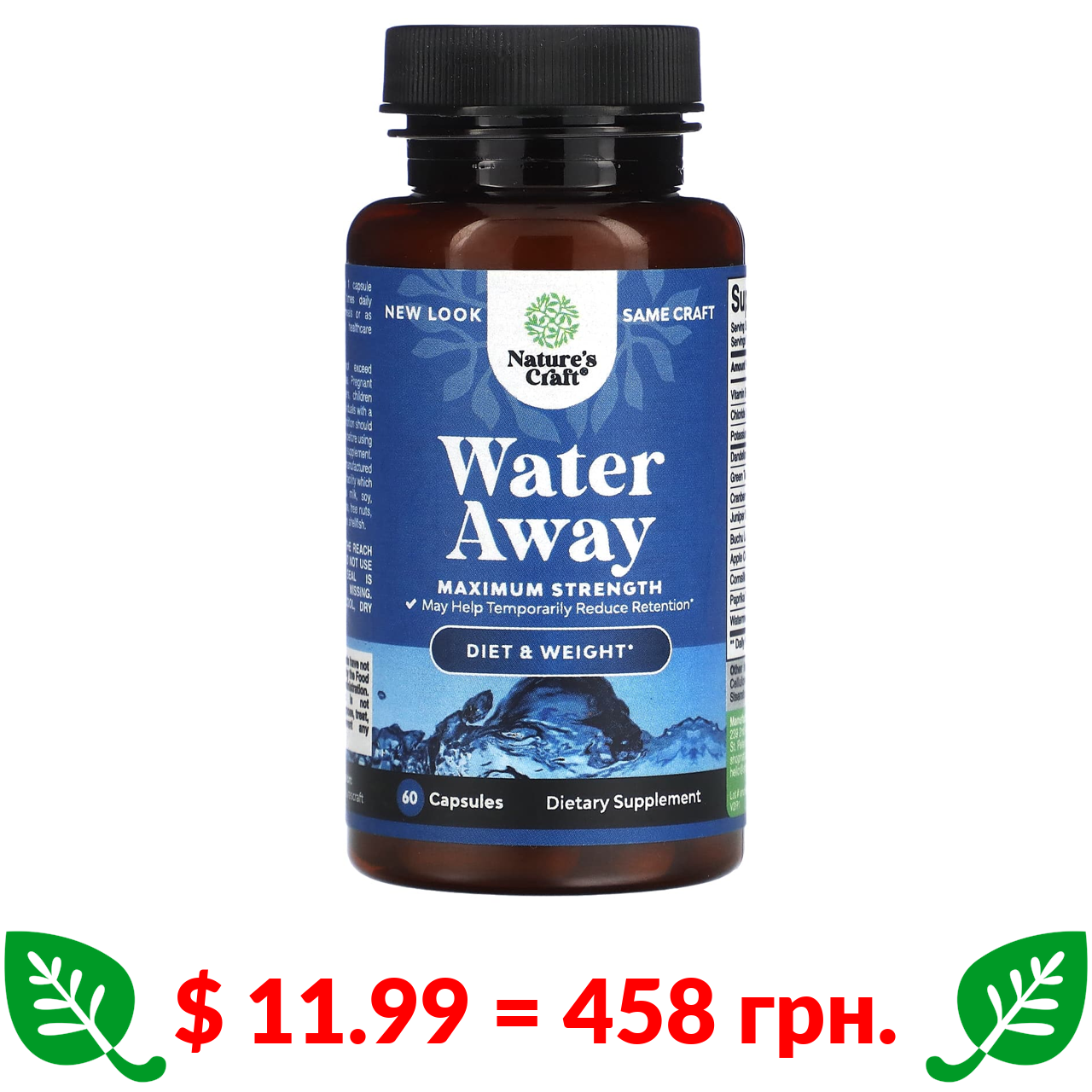 $ 11.99 = 458 грн. Nature’s Craft, Water Away, Maximum Strength, 60 Capsules