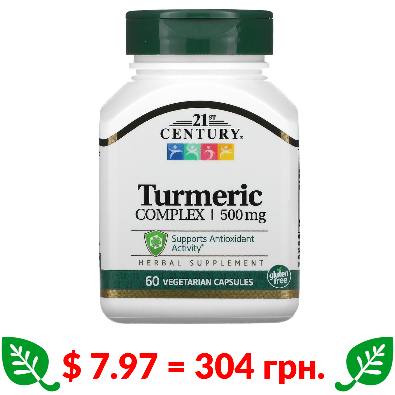 $ 7.97 = 304 грн. 21st Century, Turmeric Complex, 500 mg, 60 Vegetarian Capsules