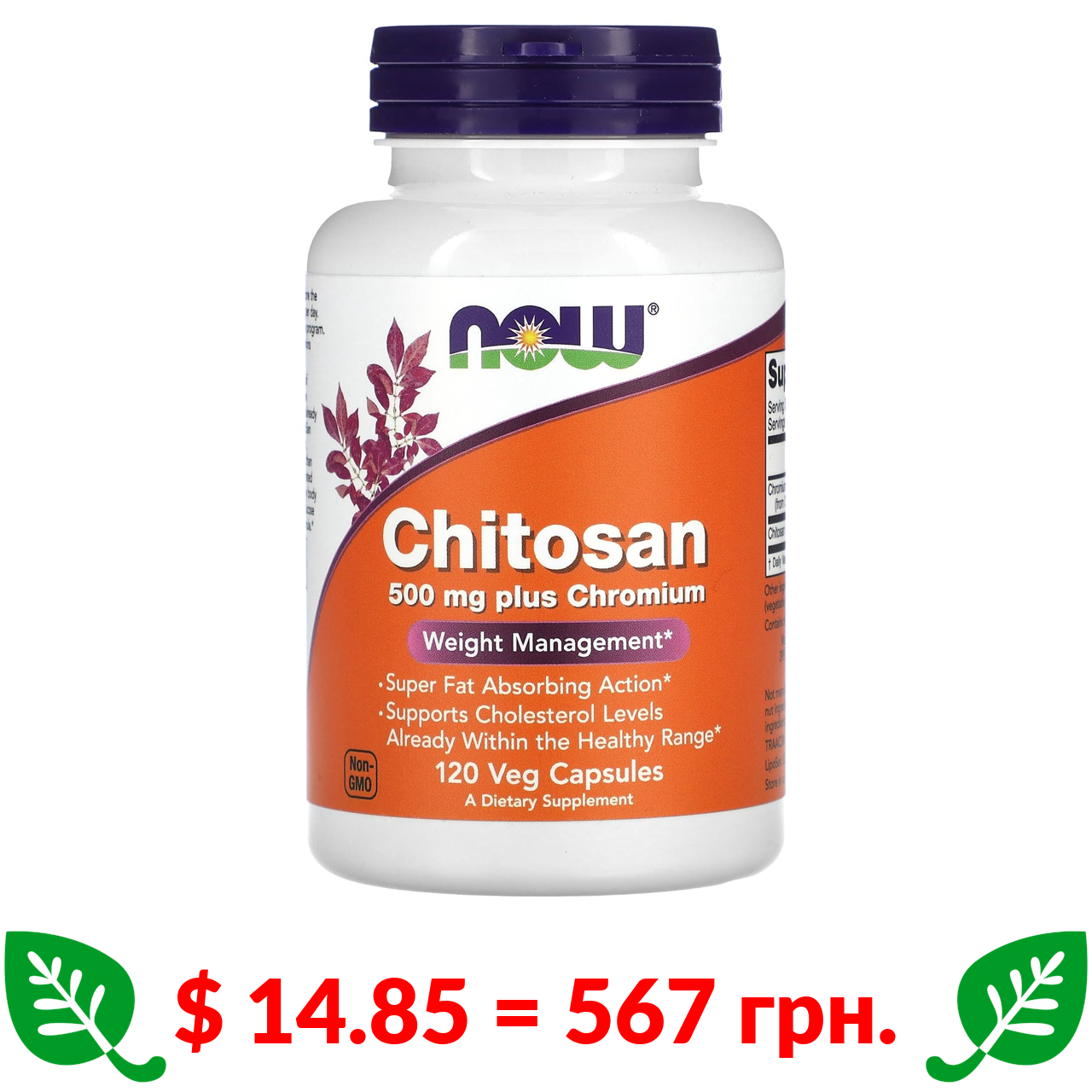 $ 14.85 = 567 грн. NOW Foods, Chitosan Plus Chromium, 500 mg, 120 Veg Capsules