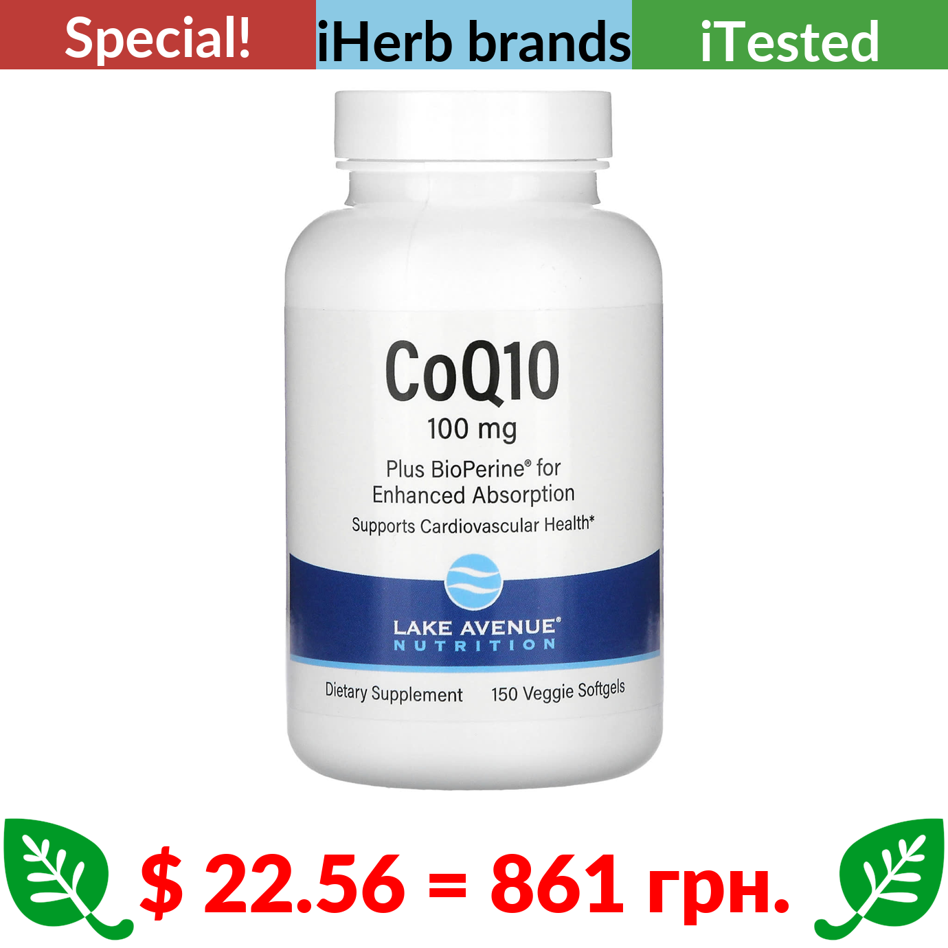 $ 22.56 = 861 грн. ???? cуперакція! ???? Lake Avenue Nutrition, CoQ10 with Bioperine, 100 mg, 150 Softgels