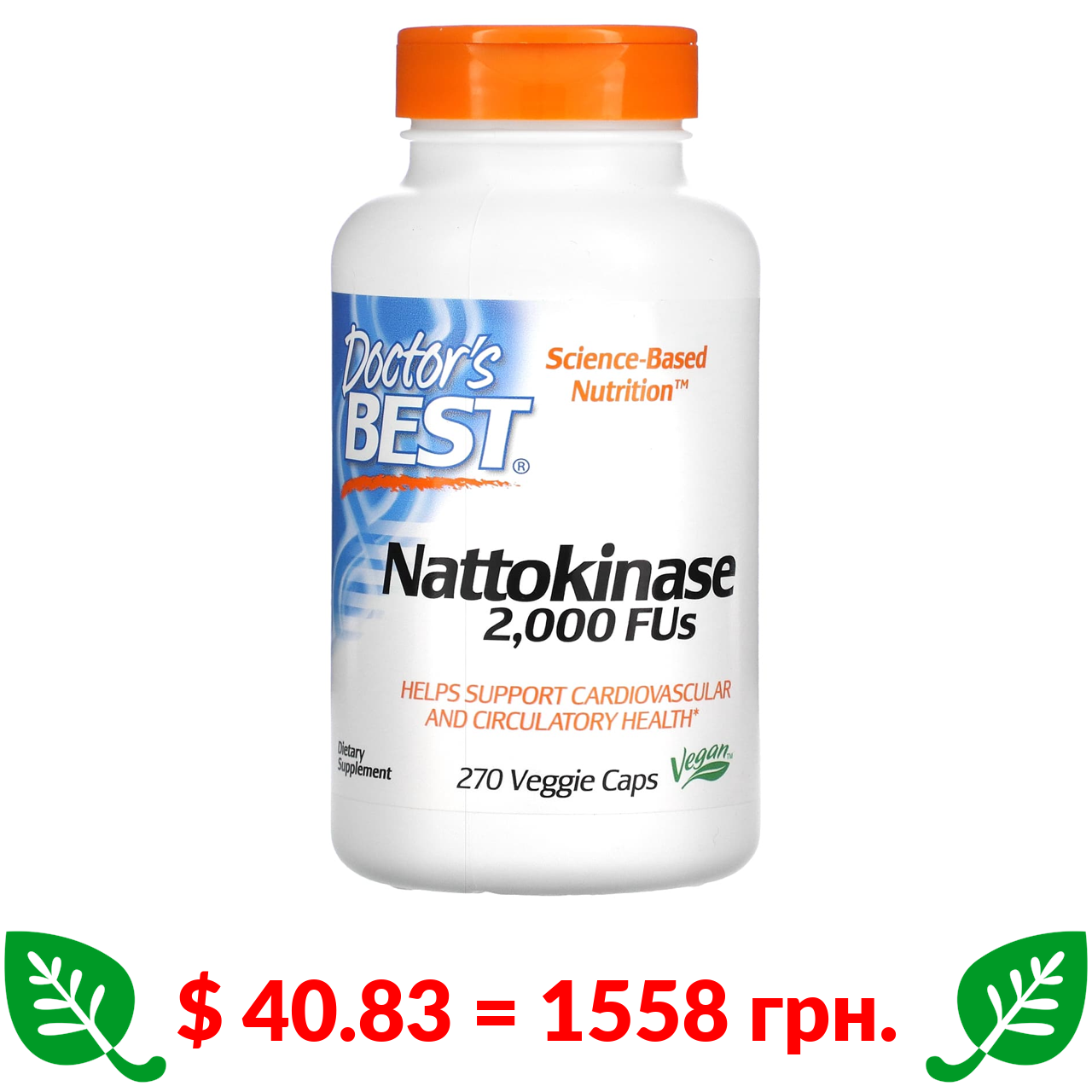 $ 40.83 = 1558 грн. Doctor’s Best, Nattokinase, 2,000 FUs, 270 Veggie Caps