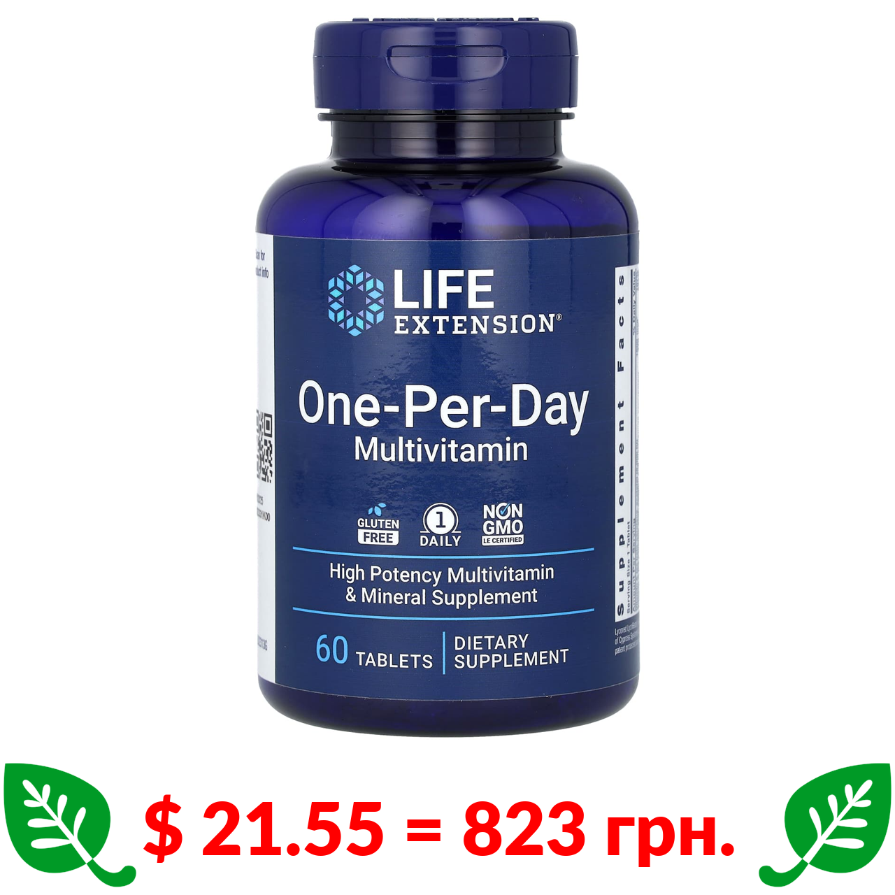$ 21.55 = 823 грн. Life Extension, One-Per-Day Multivitamin, 60 Tablets