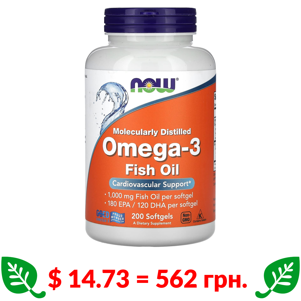 $ 14.73 = 562 грн. NOW Foods, Omega-3 Fish Oil, 200 Softgels