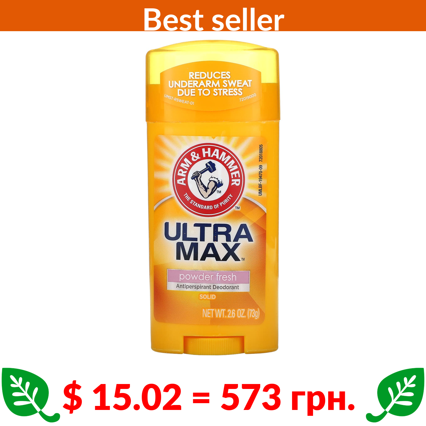 $ 1.7 = 65 грн. ???? cуперакція! ???? Arm & Hammer, UltraMax, Solid Antiperspirant Deodorant, Powder Fresh, 1 oz (28 g)