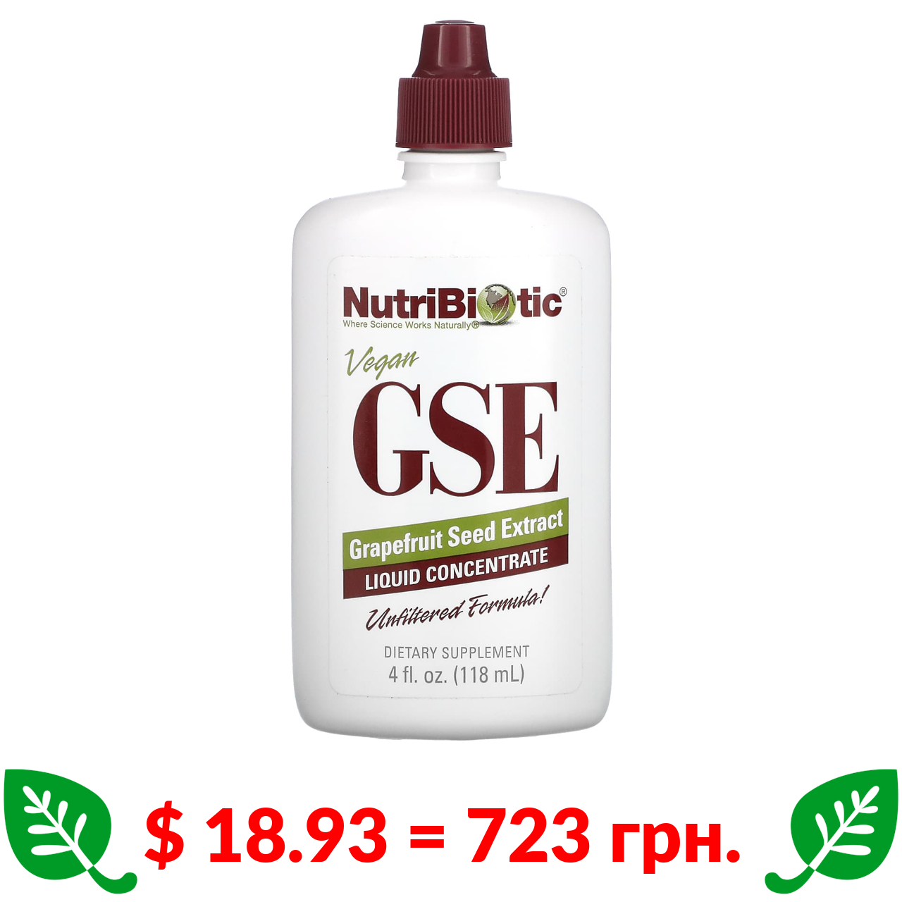 $ 18.93 = 723 грн. NutriBiotic, Vegan GSE Grapefruit Seed Extract, Liquid Concentrate, 4 fl oz (118 ml)