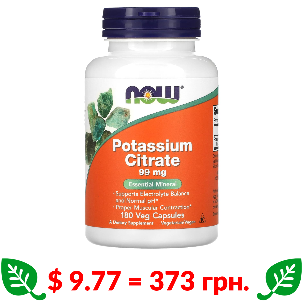 $ 9.77 = 373 грн. NOW Foods, Potassium Citrate, 99 mg, 180 Veg Capsules