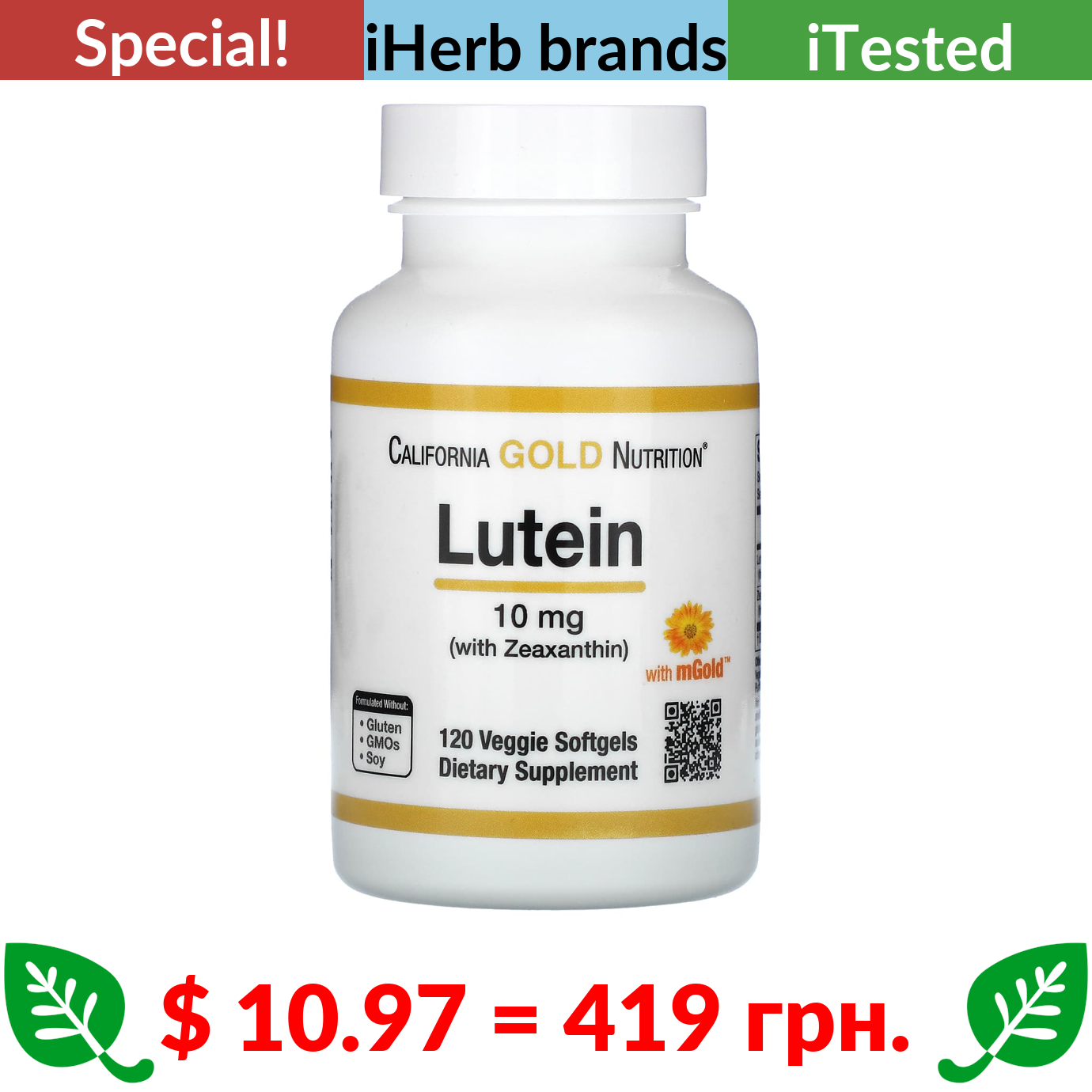 $ 10.97 = 419 грн. ???? cуперакція! ???? California Gold Nutrition, Lutein with Zeaxanthin, 10 mg, 120 Veggie Softgels