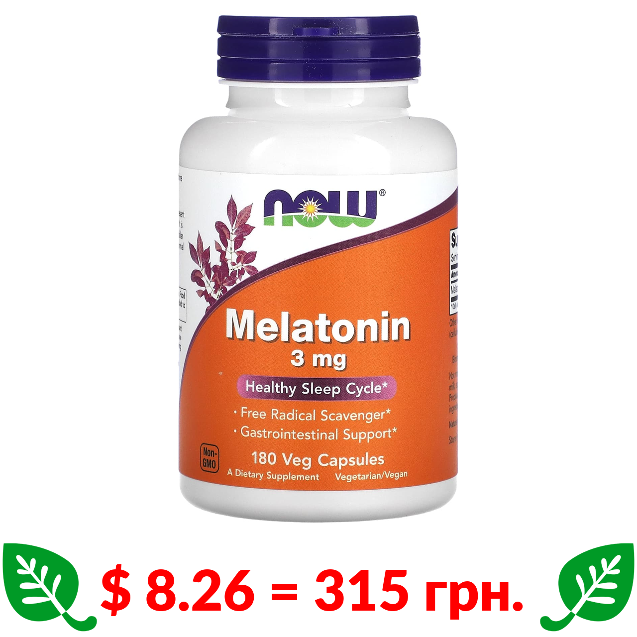 $ 8.26 = 315 грн. ????️ у кошику ????️ NOW Foods, Melatonin, 3 mg, 180 Veg Capsules