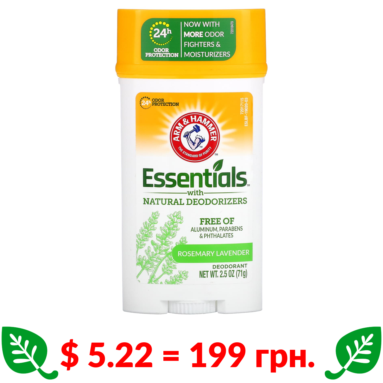 $ 5.22 = 199 грн. Arm & Hammer, Essentials with Natural Deodorizers, Deodorant, Rosemary Lavender, 2.5 oz (71 g)
