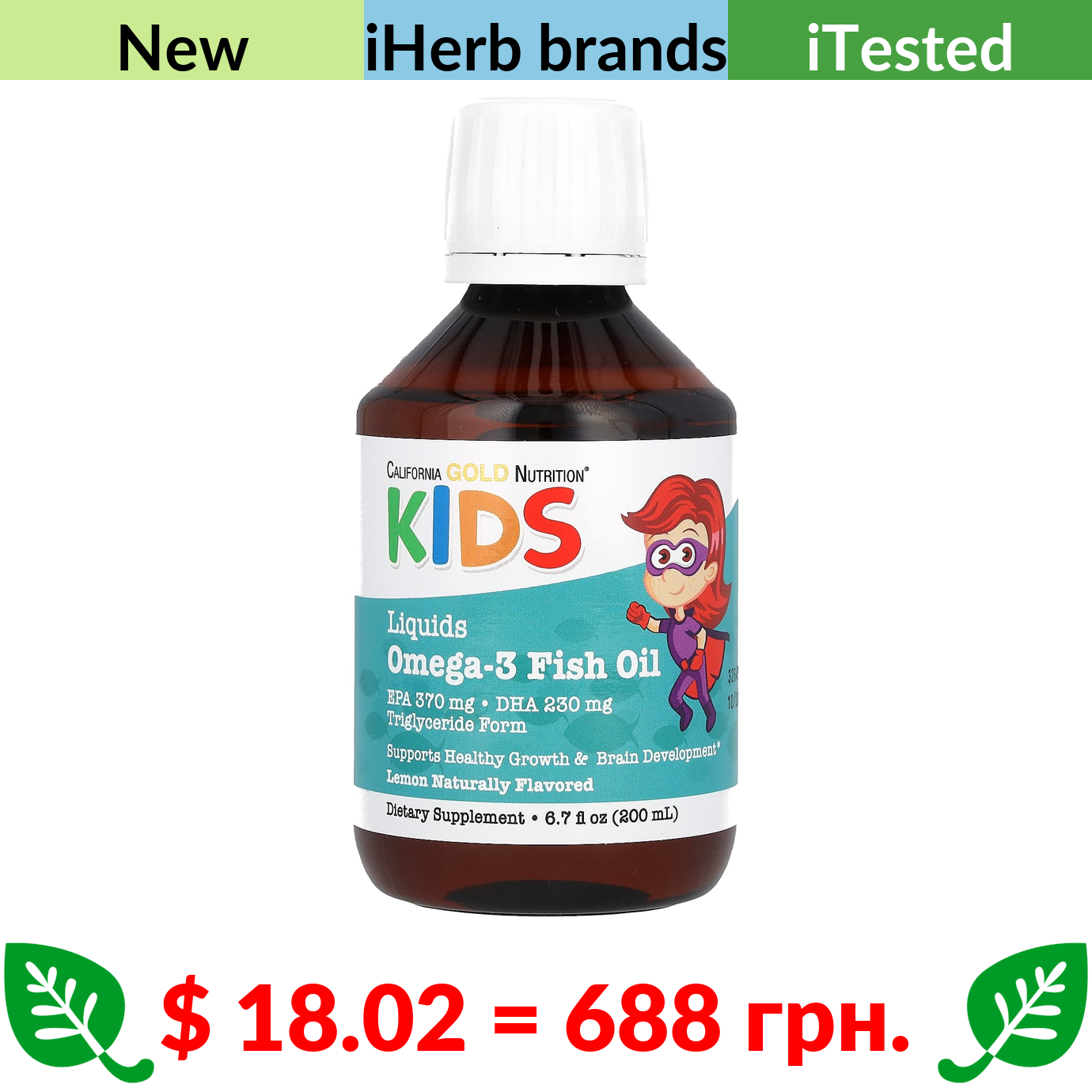 $ 18.02 = 688 грн. ????️ у кошику ????️ California Gold Nutrition, Norwegian Kids Omega-3 Fish Oil, Natural Lemon Flavor, 6.7 fl oz. (200 ml)