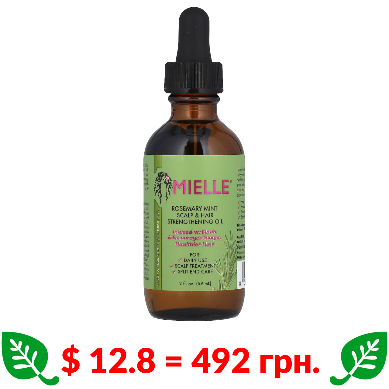 $ 12.8 = 492 грн. Mielle, Масло для укрепления волос и кожи головы, розмарин и мята, 59 мл (2 жидк. Унции)