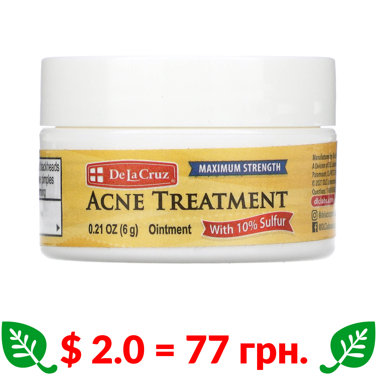 $ 2.0 = 77 грн. Дэ Ля Круз, серная мазь, средство от акне, максимальная эффективность, 6 г (0,21 унции)