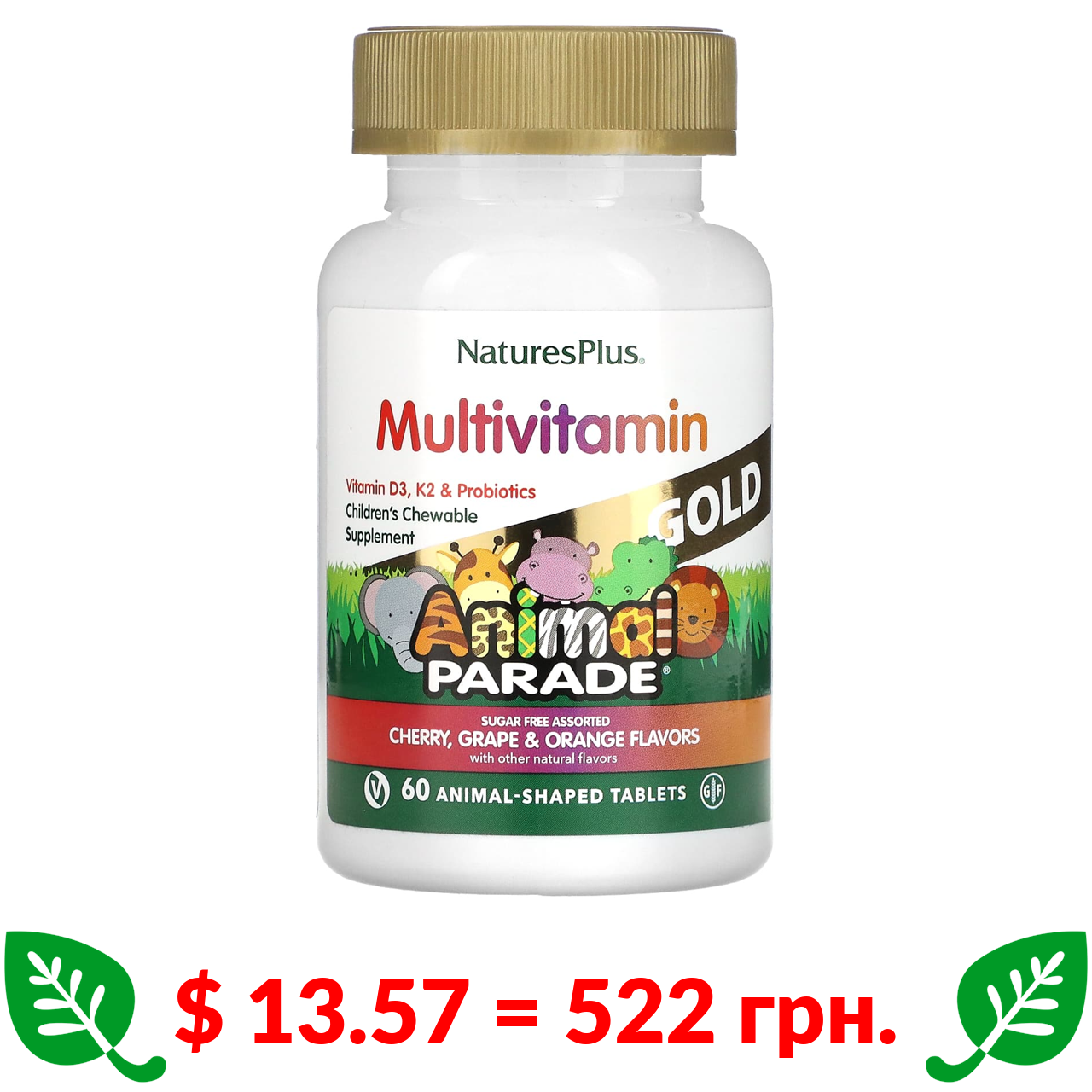 $ 13.57 = 522 грн. NaturesPlus, Source of Life, Animal Parade Gold, жевательные мультивитамины с микроэлементами для детей, в ассортименте, 60 таблеток в форме животных