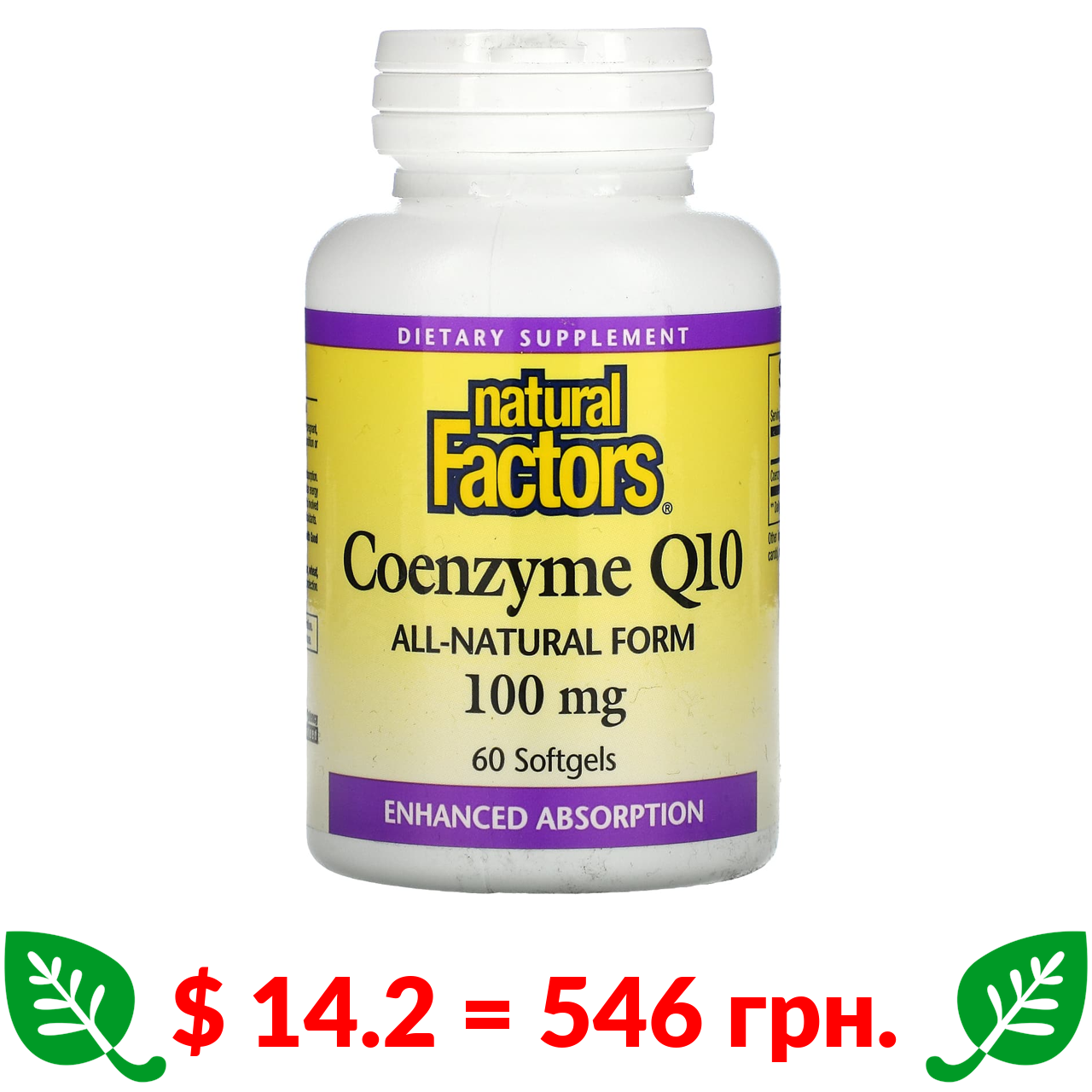 $ 14.2 = 546 грн. Natural Factors, коэнзим Q10, 100 мг, 60 мягких таблеток