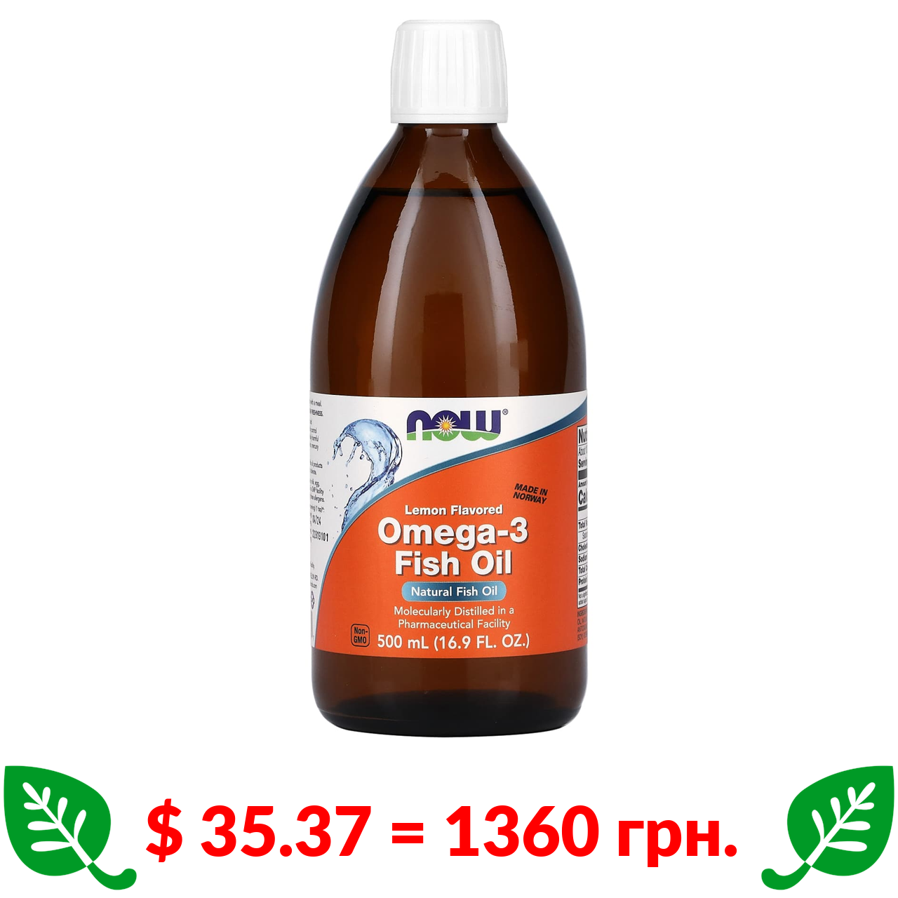 $ 35.37 = 1360 грн. Now Foods, рыбий жир с омега-3, лимонный вкус, 500 мл (16,9 жидк. унции)