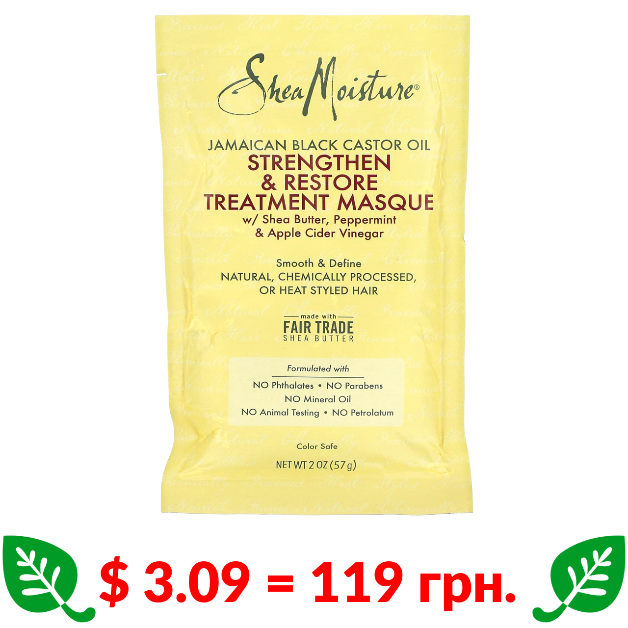 $ 3.09 = 119 грн. SheaMoisture, ямайское черное касторовое масло, укрепляющая и восстанавливающая маска, 57 г (2 унции)