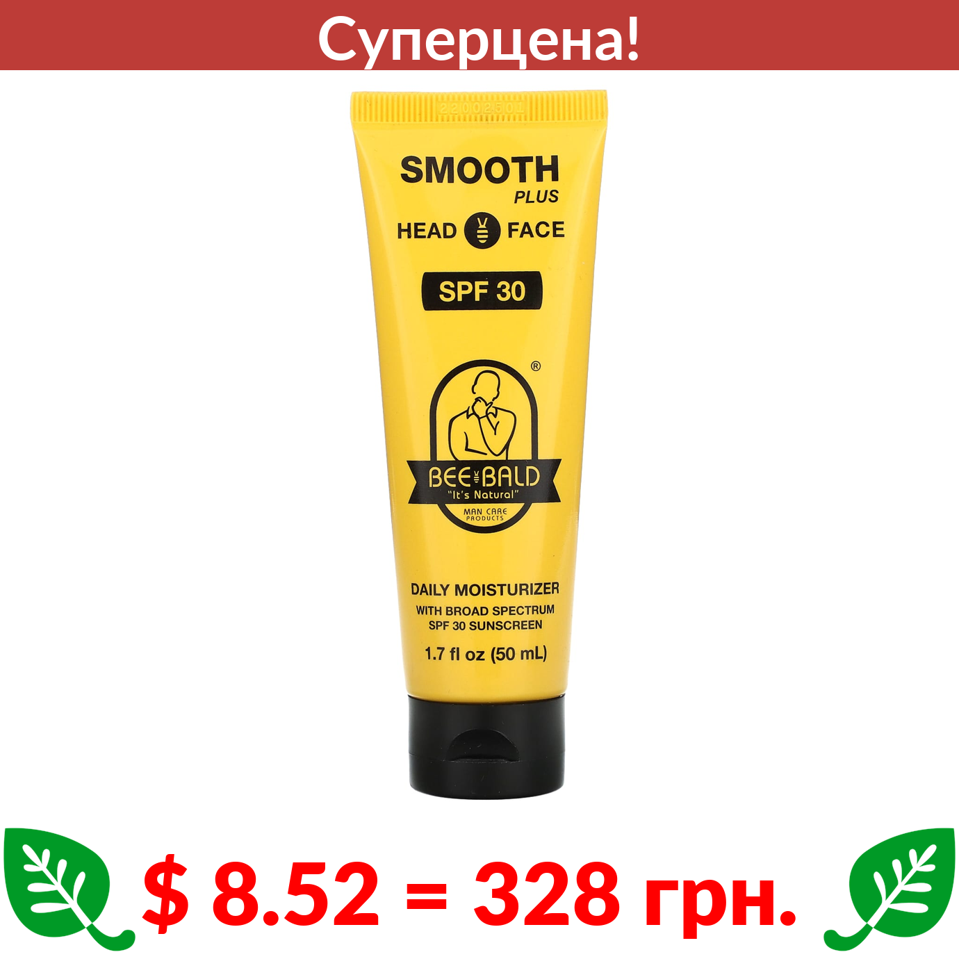 $ 8.52 = 328 грн. ???? cуперакція! ???? Bee Bald, Smooth Plus, ежедневное увлажняющее средство для головы и лица, SPF 30, 50 мл (1,7 жидк. унции)