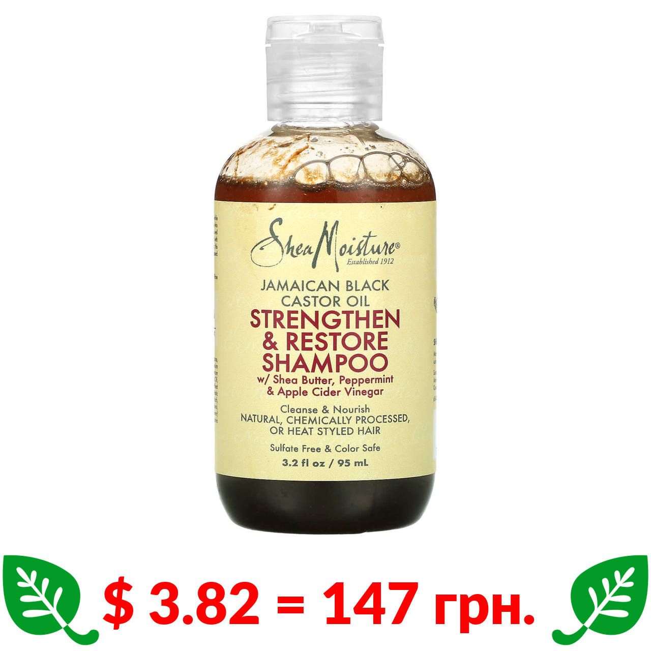 $ 3.82 = 147 грн. SheaMoisture, ямайское черное касторовое масло, укрепляющий и восстанавливающий шампунь, 94 мл (3,2 жидк. унции)