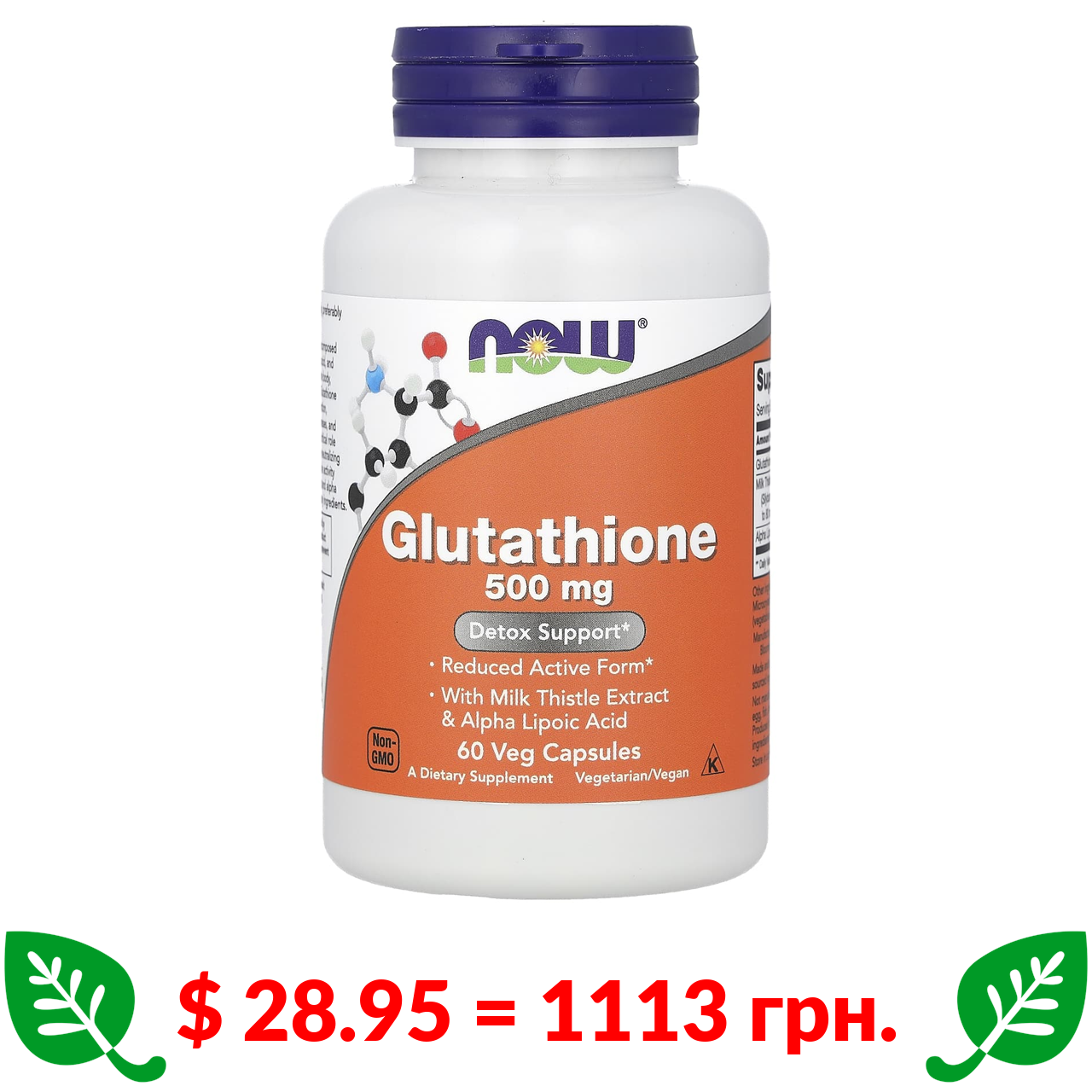 $ 28.95 = 1113 грн. Now Foods, глутатион, 500 мг, 60 растительных капсул
