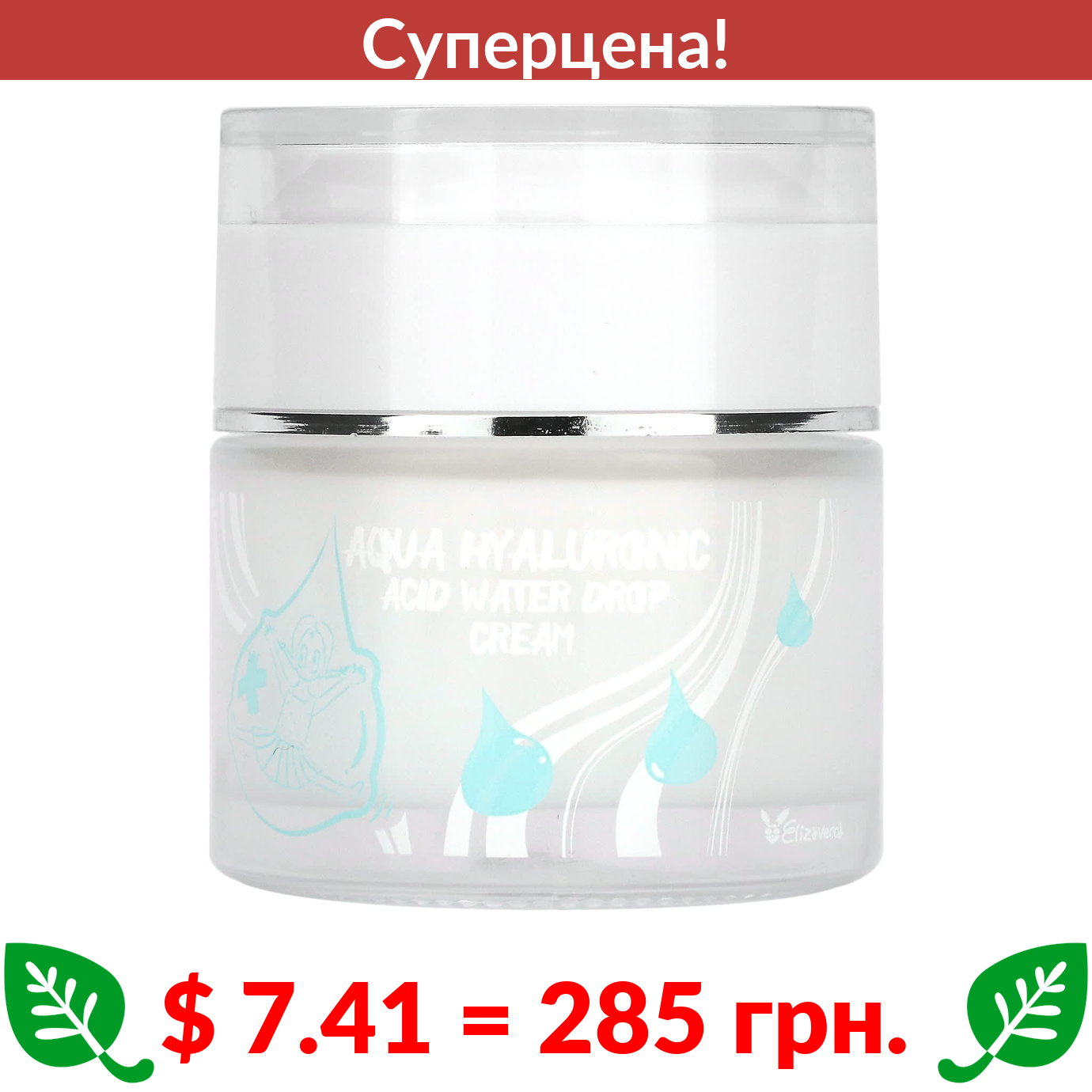 $ 7.41 = 285 грн. ???? cуперакція! ???? Elizavecca, Водный крем с гиалуроновой кислотой и водой, 50 мл (1,69 жидк. Унции)